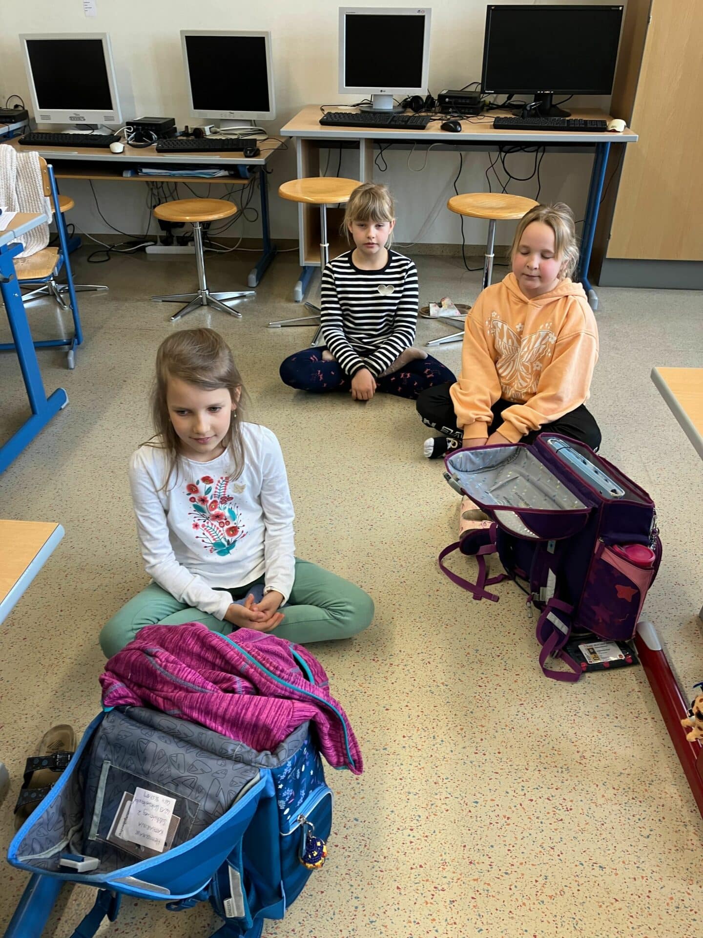 Bei meinem heutigen Besuch in der Volksschule Unterweitersdorf habe ich den Kindern vom Besuch der zwei japanischen buddhistischen Mönche im INNERversum erzählt. Das hat die Schüler:innen total begeistert und interessiert. Ganz spontan ist die Idee entstanden, uns auf den Boden zu setzen und gemeinsam zu meditieren. Dabei ist ein gemeinsamer Moment der Stille und Verbundenheit entstanden im Klassenraum, der sehr besonders war.
