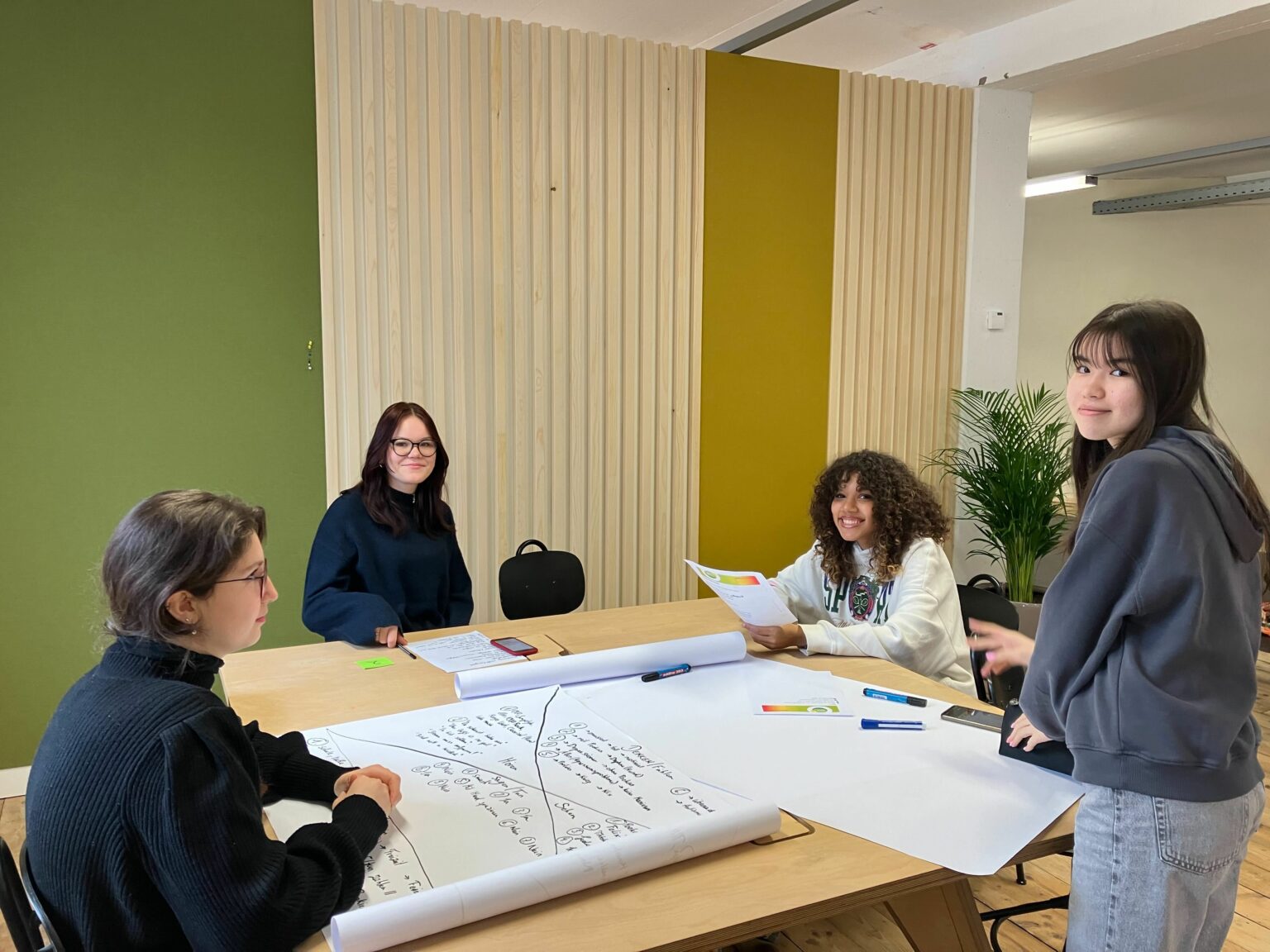 Den ersten Tag haben wir mit einer sogenannten Empathy Map begonnen, um die Bedürfnisse der Jugendlichen zu ermitteln. In vier Gruppen aufgeteilt durften die Schüler:innen jeweils eine Person „zeichnen“, die sich in einigen Punkten unterscheidet und doch einige Gemeinsamkeiten hat.