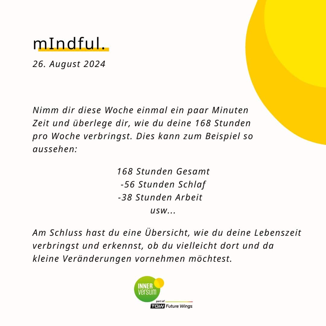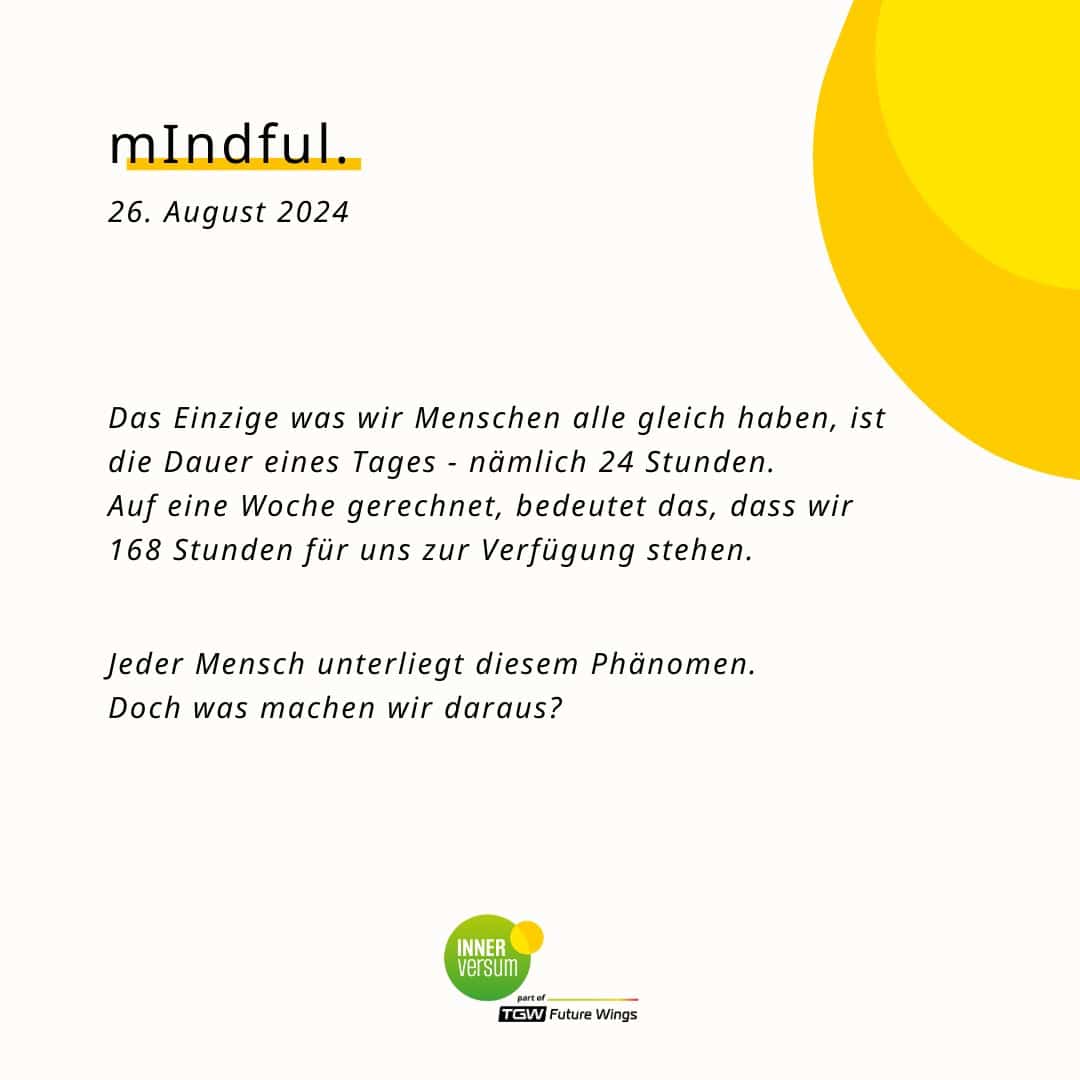 Die Dauer eines Tages (24 Stunden) ist für jeden Menschen gleich. Doch was machen wir daraus? Mit der heutigen Übung laden wir dich ein, dir anzuschauen, wie du deine Zeit verbringst …