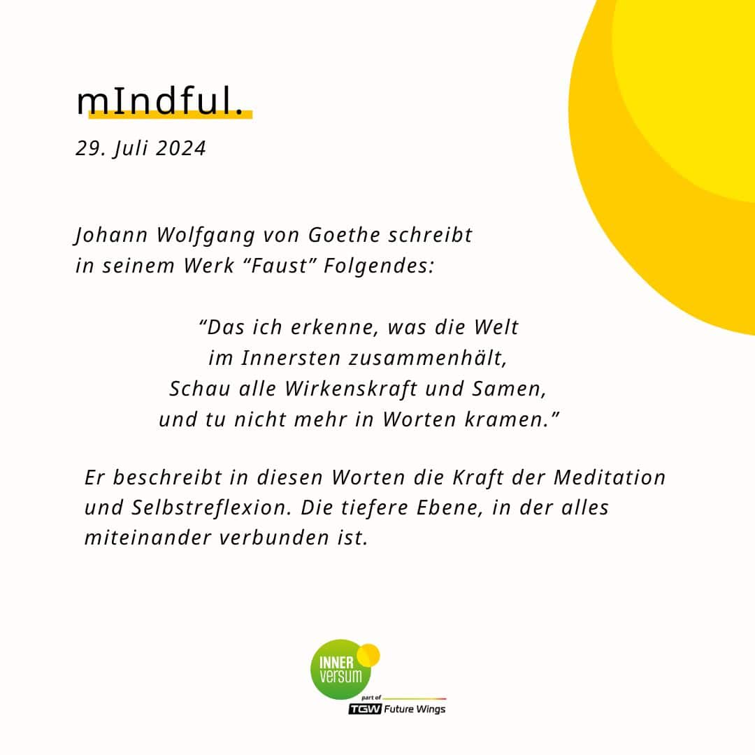 Johann Wolfgang von Goethe beschreibt in seinem Werk “Faust” die Kraft der Meditation und Selbstreflexion. Mit der heutigen Übung laden wir dich genau dazu ein …