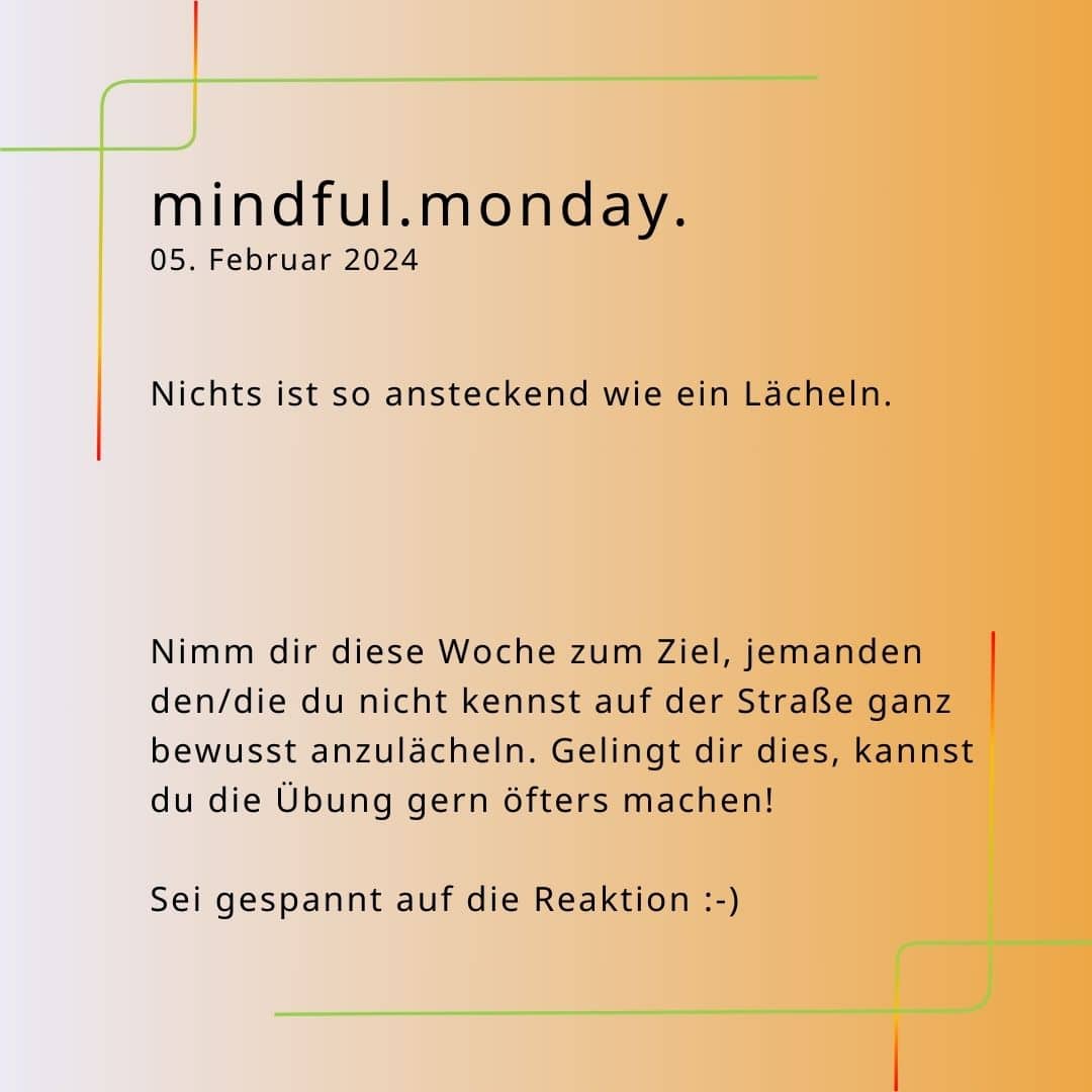 Nimm dir diese Woche zum Ziel, jemanden den/die du nicht kennst, auf der Straße ganz bewusst anzulächeln. Sei gespannt auf die Reaktion…