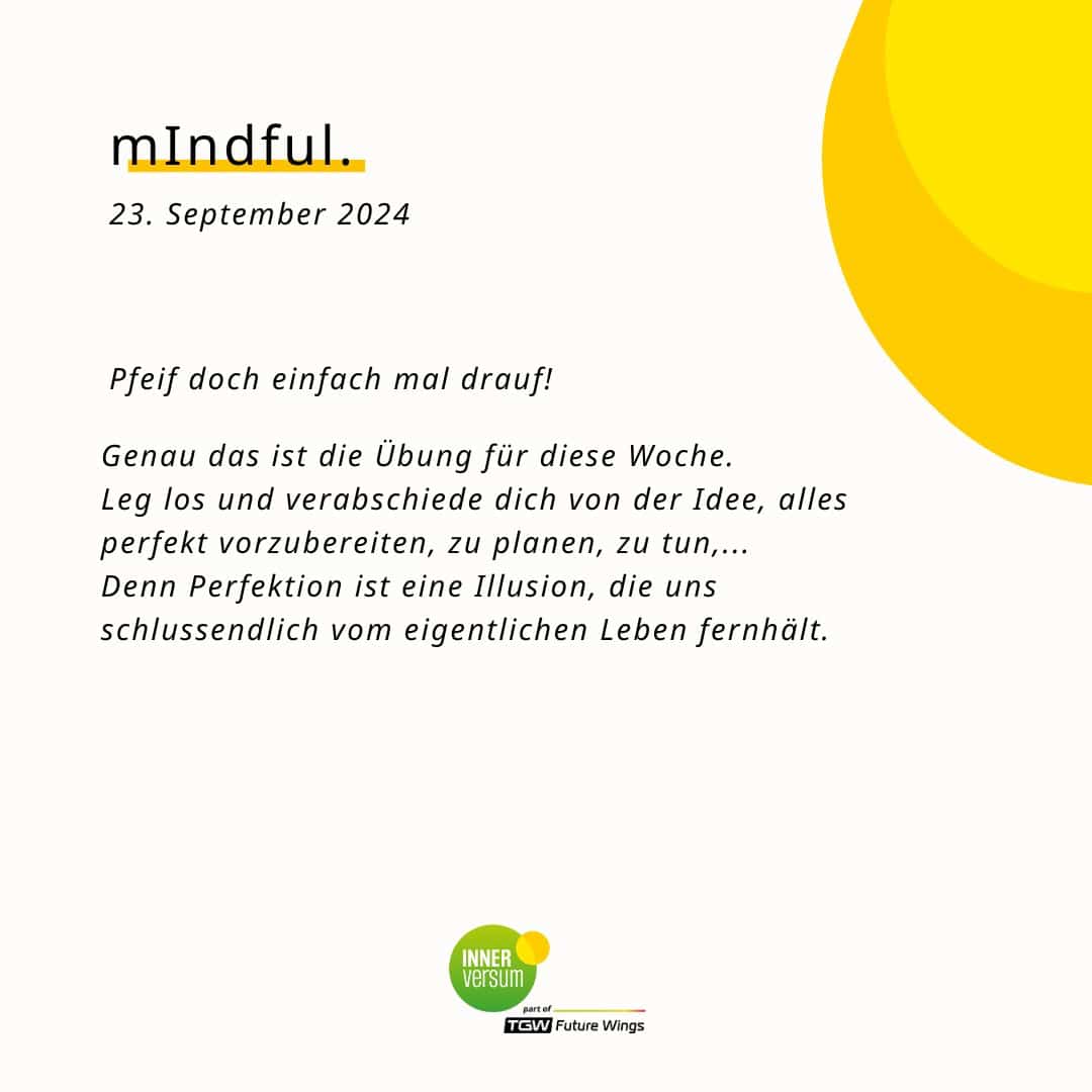 Perfektion ist eine Illusion, die uns vom eigentlichen Leben fernhält. Pfeif doch einfach mal drauf! Mit der heutigen Übung laden wir dich genau dazu ein …
