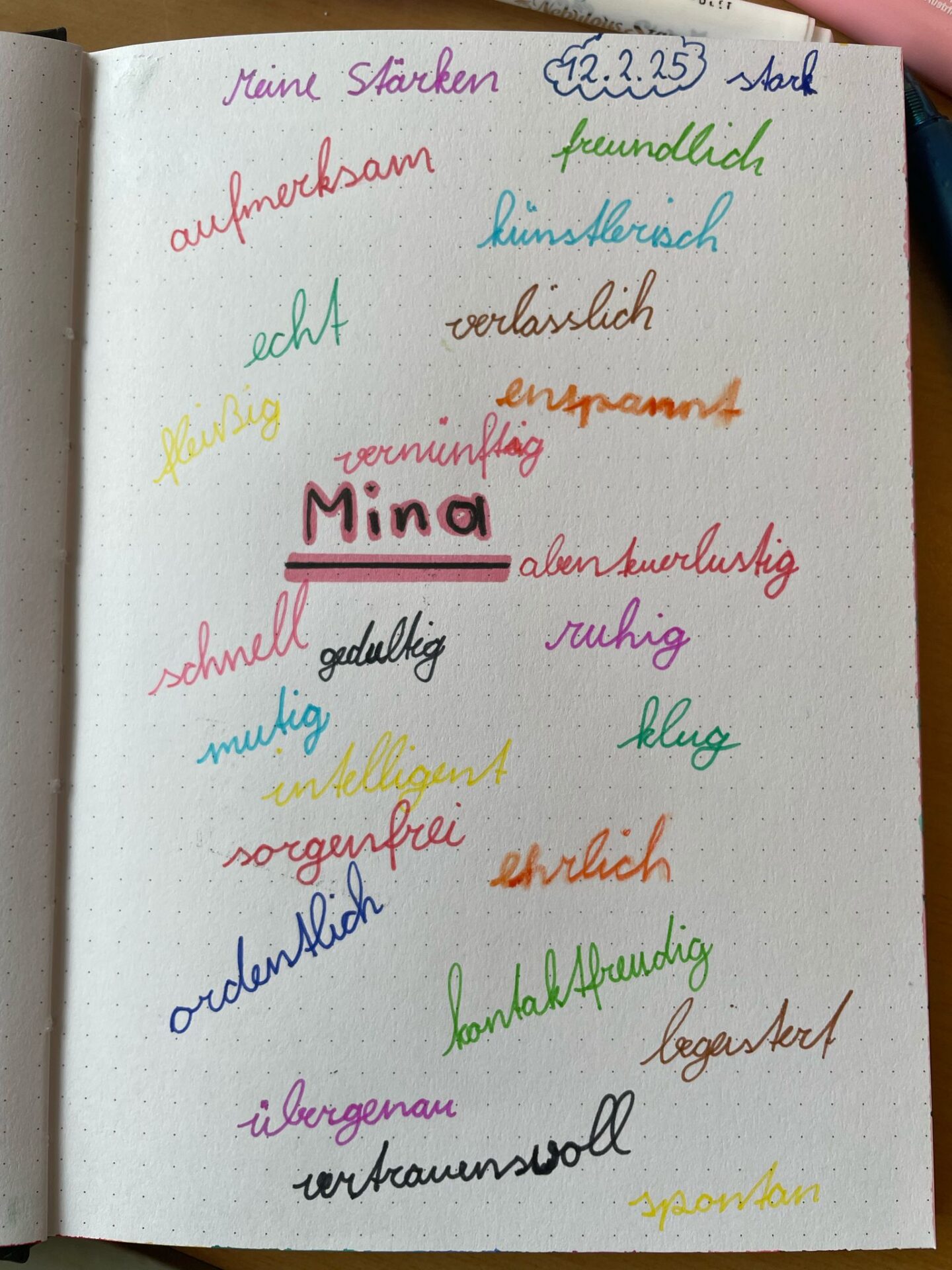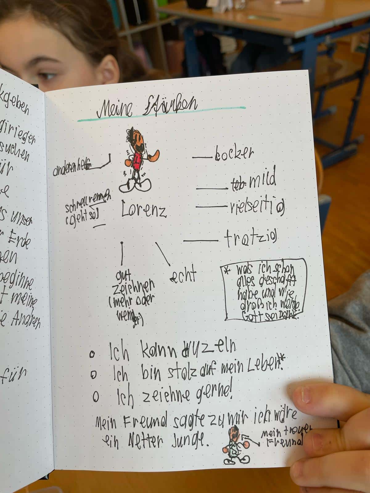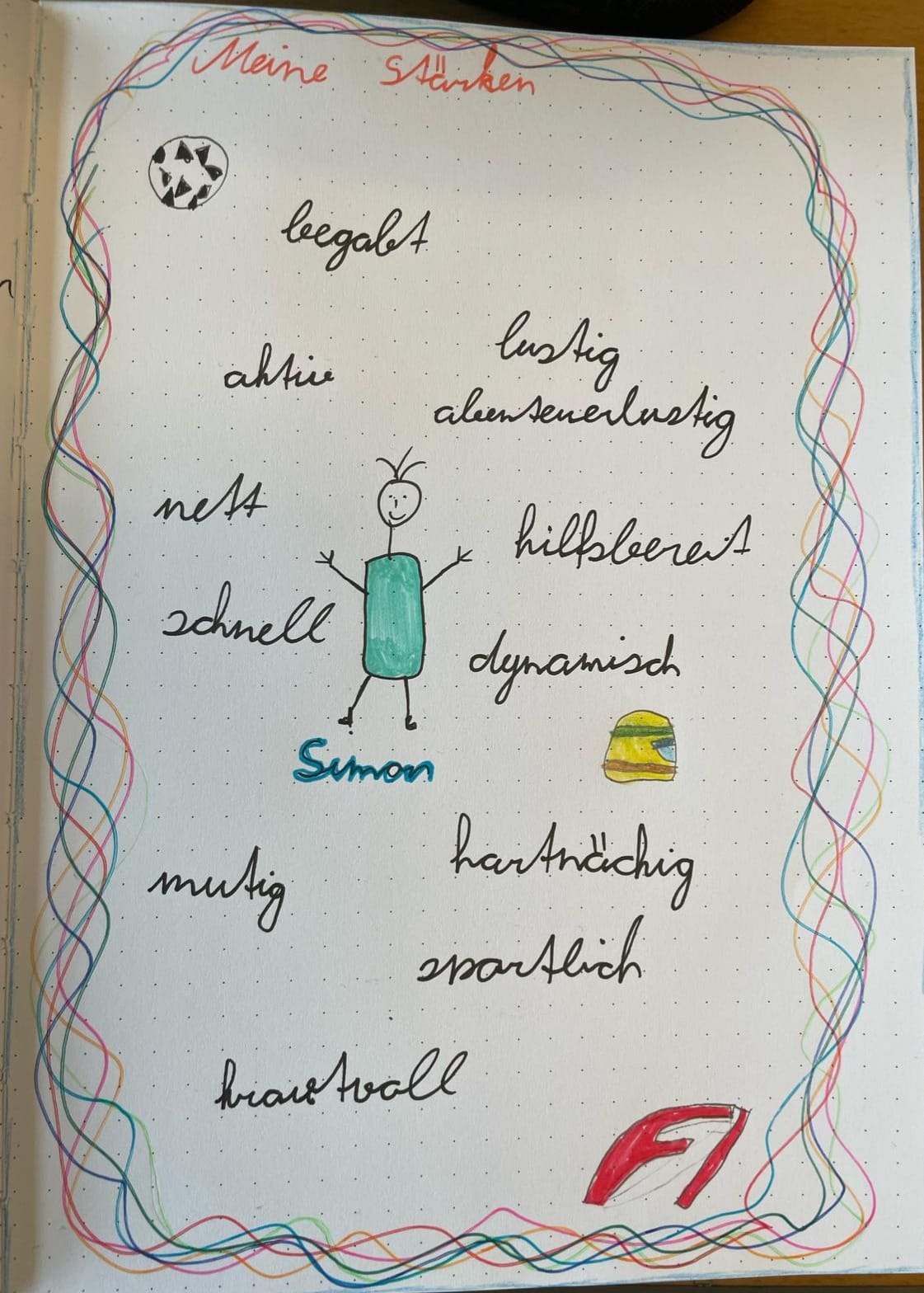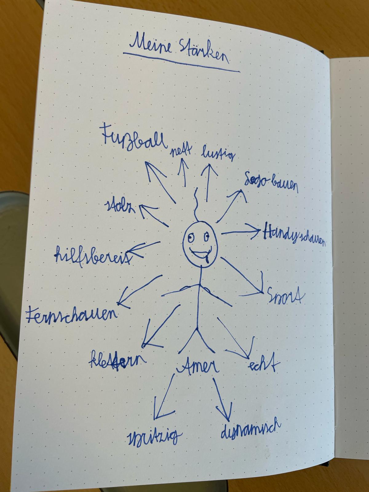Als Start schrieben sie in ihr Glückstagebuch, welche Stärken sie an sich selbst schätzen. Dabei ging es nicht nur um Fähigkeiten, sondern auch um Charaktereigenschaften und Dinge, die ihnen Freude bereiten.