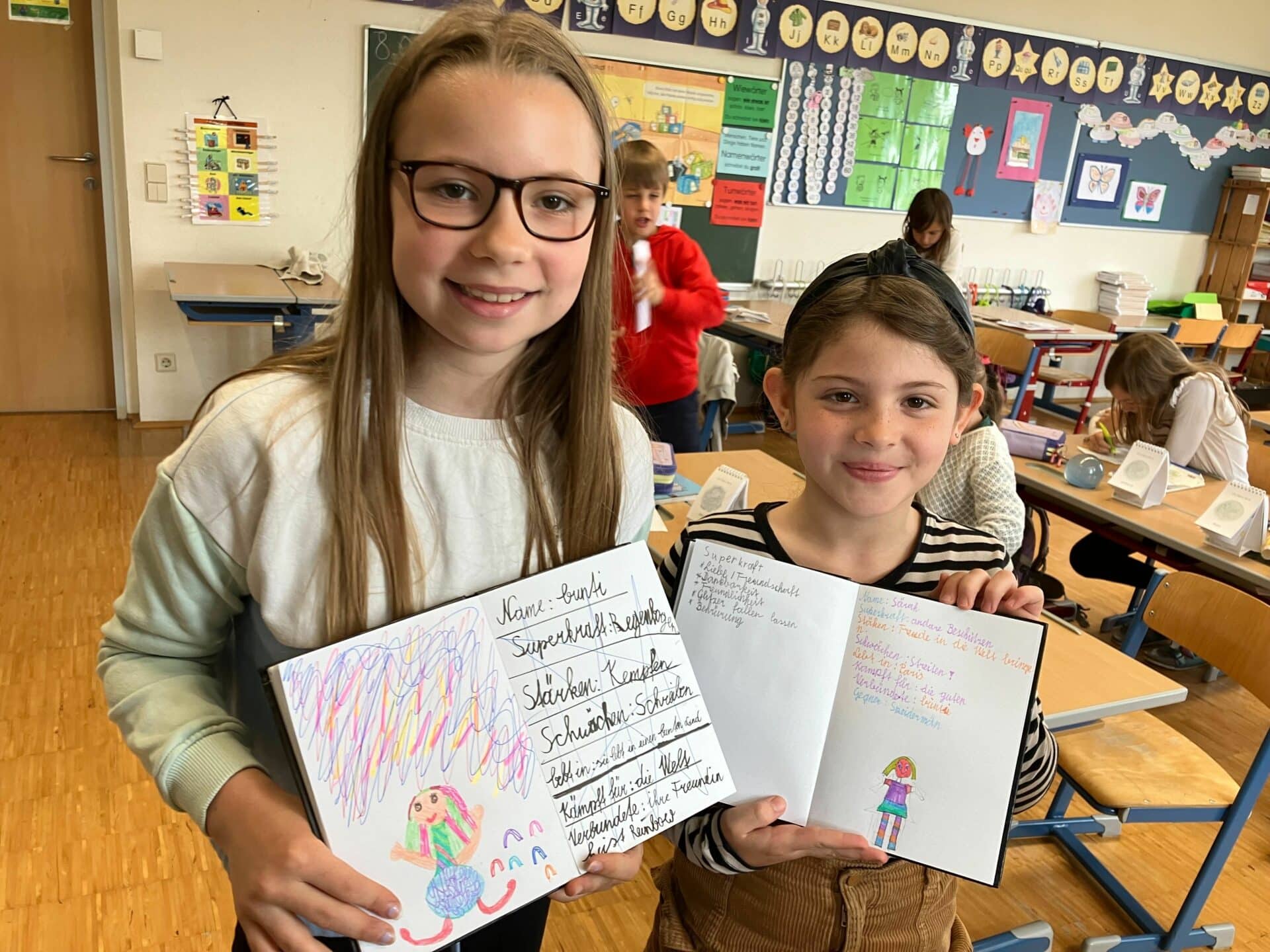 Superkräfte können immer dann eingesetzt werden, wenn man mutig sein möchte, wenn man etwas schaffen möchte, wenn etwas schwierig ist, wenn wir uns nicht so gut fühlen, wenn wir uns unwohl fühlen, wenn man schlechte Laune hat oder sich kraftlos fühlt und auch für ein besseres Miteinander.